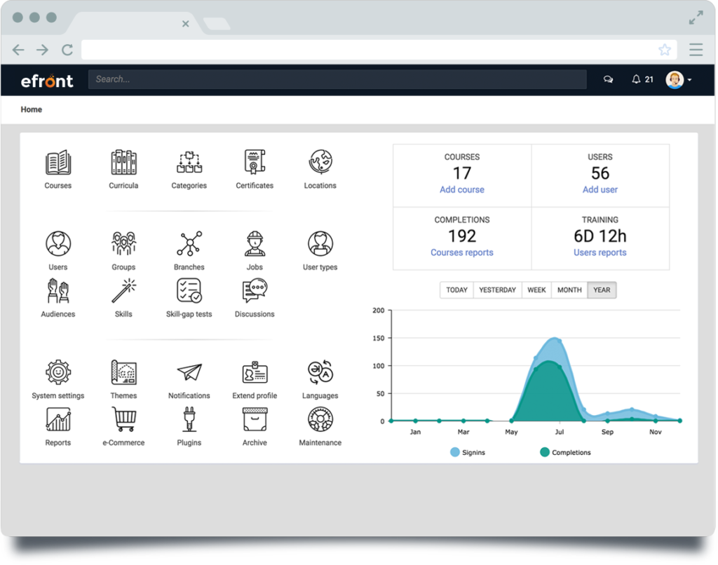 Among the features users like about eFront is its customizability and its social media capabilities, enabling users to fully maximize the platform via social networking sites. Other features eFront offers are: