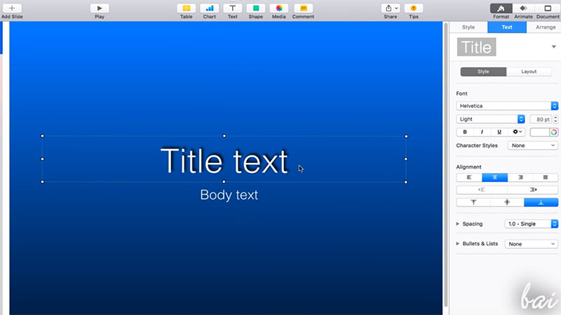 Using Keynote, users can create visually pleasant motion with objects using animation and transition. There are a variety of animations available with each one producing great effect. Zoom animation is also possible with the platform, helping presentation audience stay focused on your slides. Unlike other software of its kind, Keynote lets you include gradual changes in your chart or graph data. You can also add a background track from your own music library.