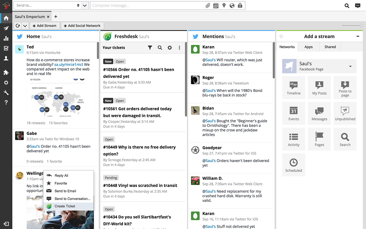 True multichannel capability is providing a single interface to view all the actions from different touch-points. Freshdesk, for instance, allows you to reply to chats (via Freshchat), web forms, social mentions (Facebook and Twitter), emails and even answer calls (via Freshcaller) inside a single infrastructure. Chats, calls or emails can be converted into tickets right on the same spot and categorized based on Service Level Agreement, deadline or priority.
