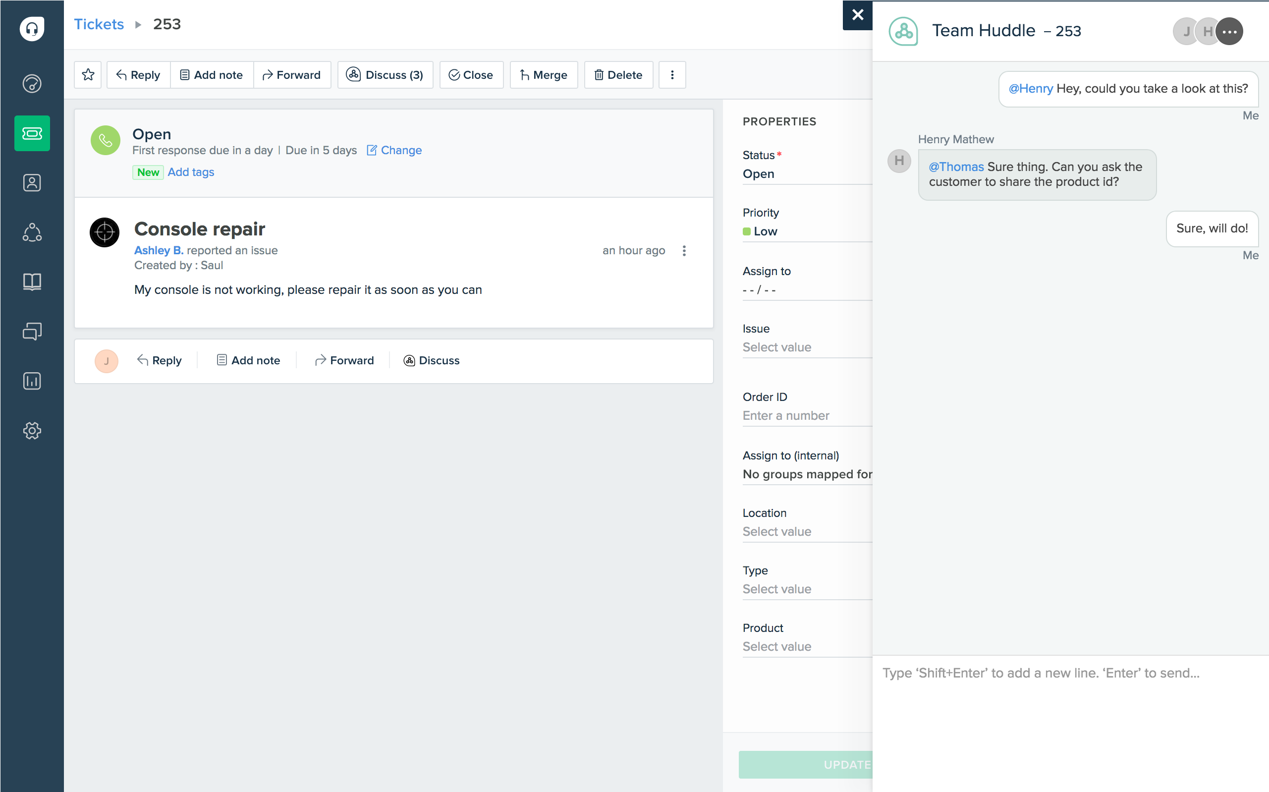 - Agents collaborate easily, referencing conversations and interactions from the same place.