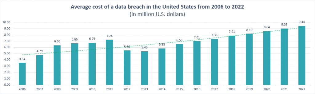 As the number of reported data breaches continues to increase, so too does the estimated cost of significant cyber attacks for small business owners. According to figures published by Statista, the average cost of a data breach targeted towards businesses in the US amounted to almost $9.5 million in 2022, with figures steadily rising year-on-year over the last decade.