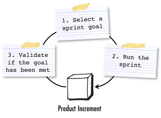 - Work is done in 2- or 3-week cycles called sprints, after which the project is reassessed and refocused for the next sprint.