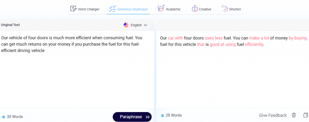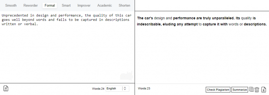 There’s not a lot to say about the above. You can see how the tool has improved the readability by changing the words and sentence formation of the content. The paraphrased version is less convoluted and easier to understand as compared to the input.