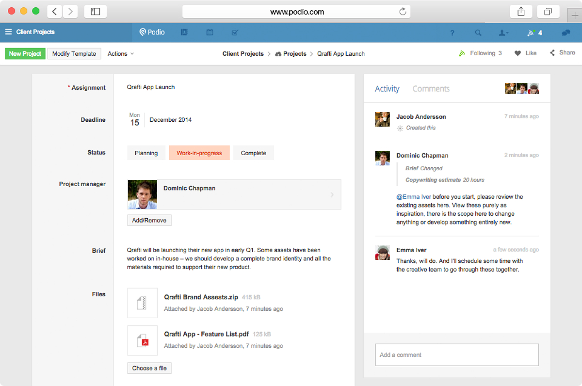 Collaboration software Podio is a great tool for construction financial management. It helps construction managers save plenty of time spent on financial details and utilize that time effectively at the construction site. You can use a Podio webform to receive change orders which ensures there is no confusion about when and where a change order was submitted. Plus, you can accept or decline change orders and notify the construction firm automatically about this. Other advantages are you can allow the site owner to view exact financials any time, and create and send updates easily to them.