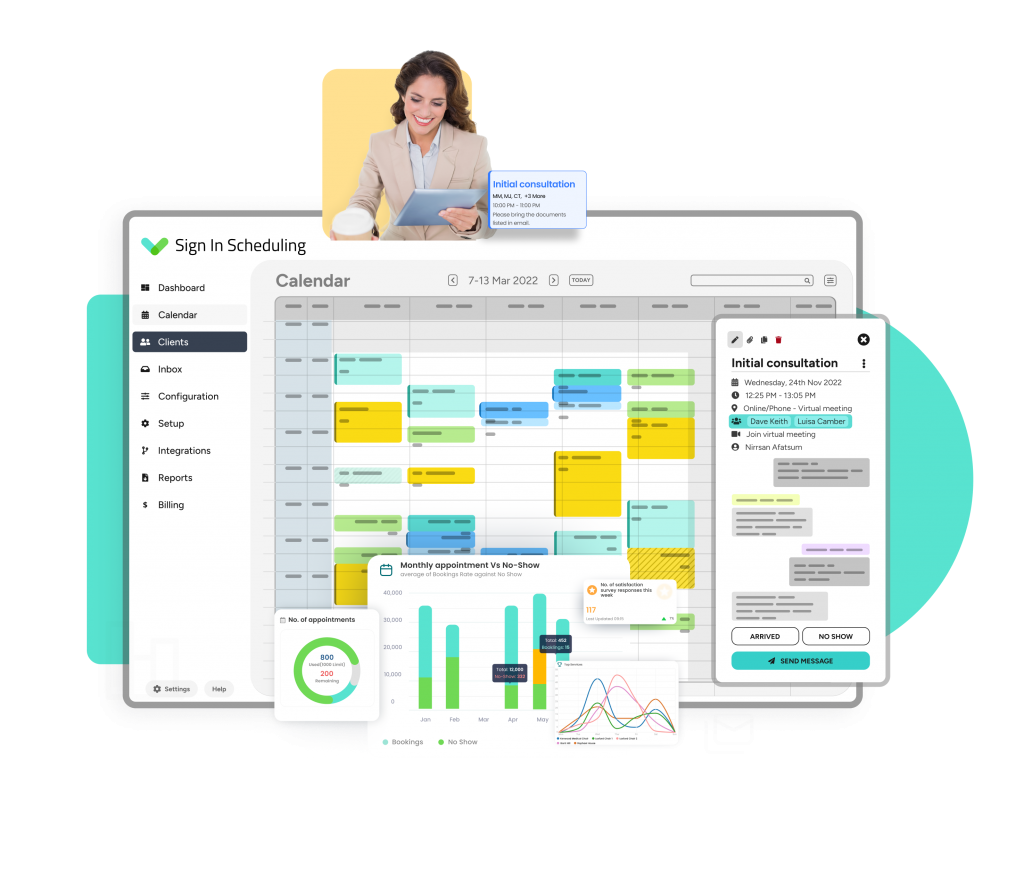 7. Sign In Scheduling – Sign In Scheduling, formerly known as 10to8, is a versatile appointment software. One of its main features is convenient self-service, allowing customers to book, reschedule, or cancel appointments at their convenience. This feature lets you prevent no-shows and free up precious time spent performing admin tasks. In addition, you can also set up automated booking reminders via email and SMS.