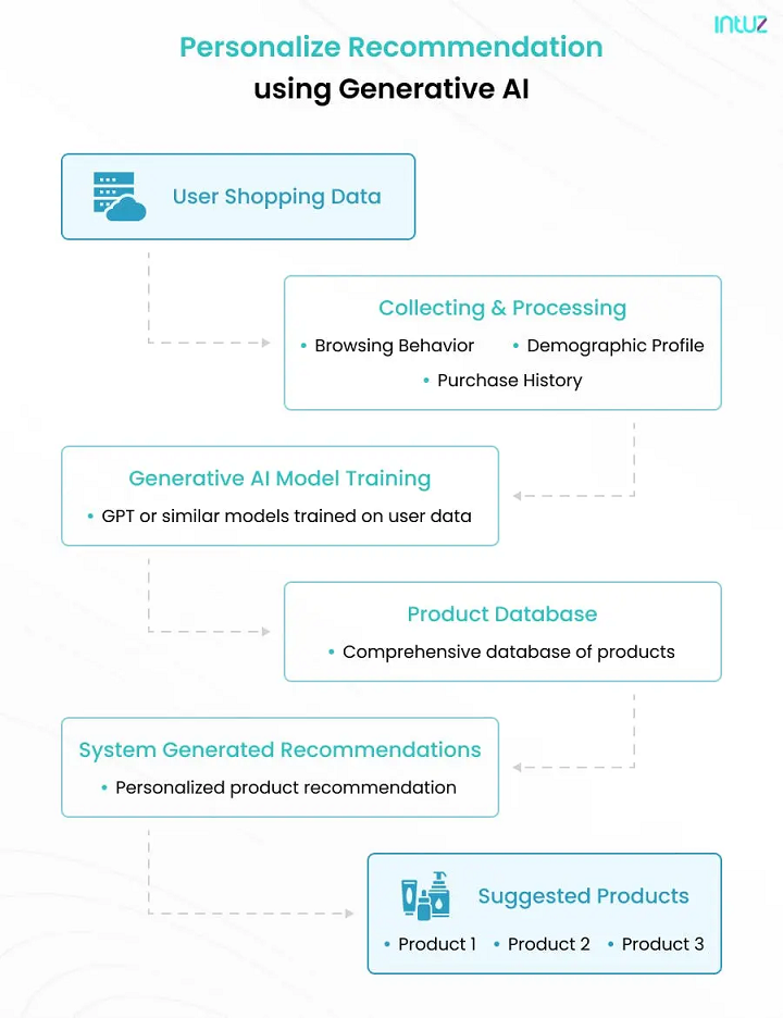 Trained on this data, AI offers tailored product suggestions, thus increasing the likelihood of sales. That’s the process: