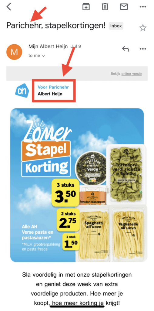The above screenshot is a good example of precise targeting. It’s an email specifically made “for me” from the supermarket I usually do my groceries, telling me about the best weekly discount offers.