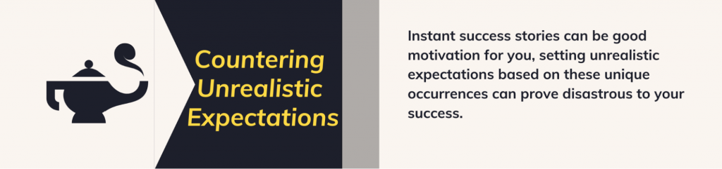 While these kinds of instant success stories can be good motivation for you, setting unrealistic expectations based on these unique occurrences can prove disastrous to your success.