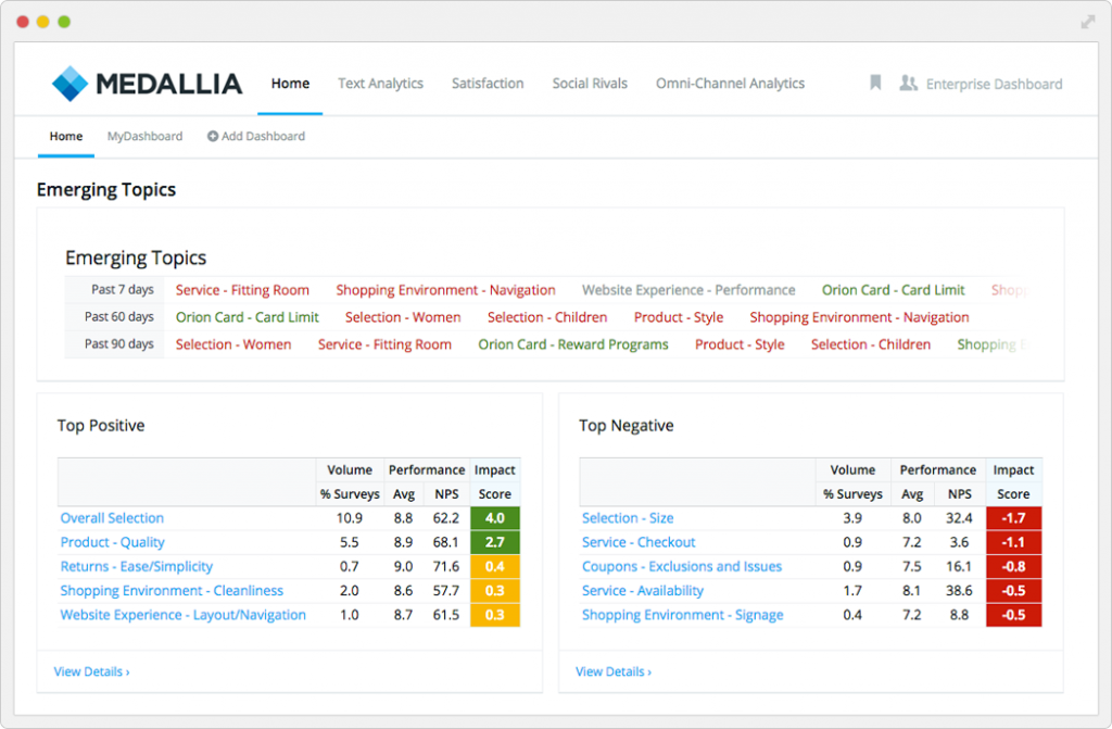 Medallia is the third CEM on the list, and this one shifts its focus to a complete customer experience. It’s a fairly powerful solution that tracks information from a wide variety of sources, and lets you focus on the online reputation management of your company.