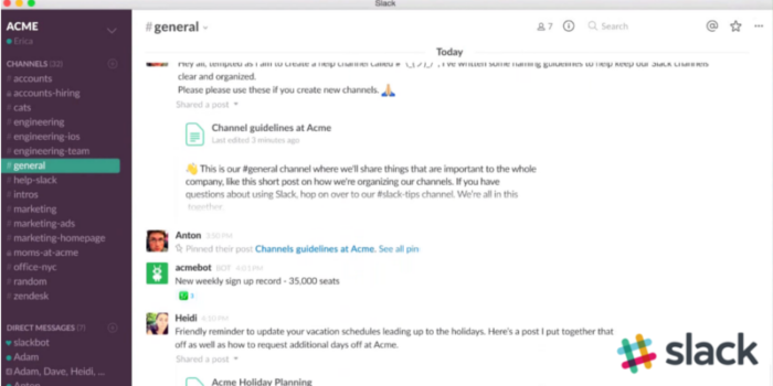 Slack offers a new level of instant messaging combining different communication channels in a single platform. It is a popular and highly rated app that helps users to communicate easily and to store their interaction data in a searchable and actionable database.