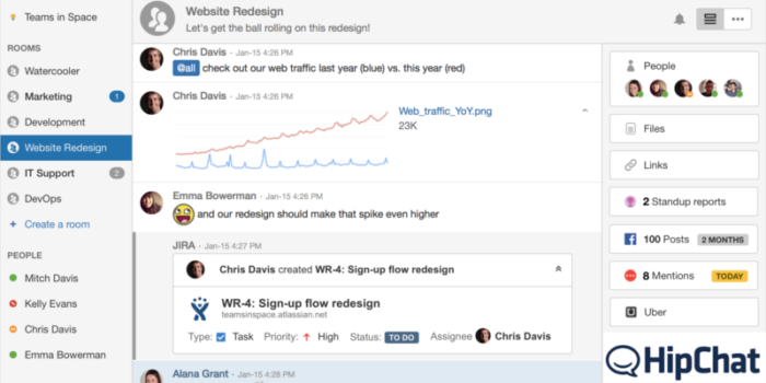 HipChat offers sophisticated collaboration features such as notifications, file sharing, video conferencing, and screen sharing. Users can customize the app to fit their needs and make it brand-suitable. For these reasons, users have come to love HipChat and the app has become an established player in the communication software market.