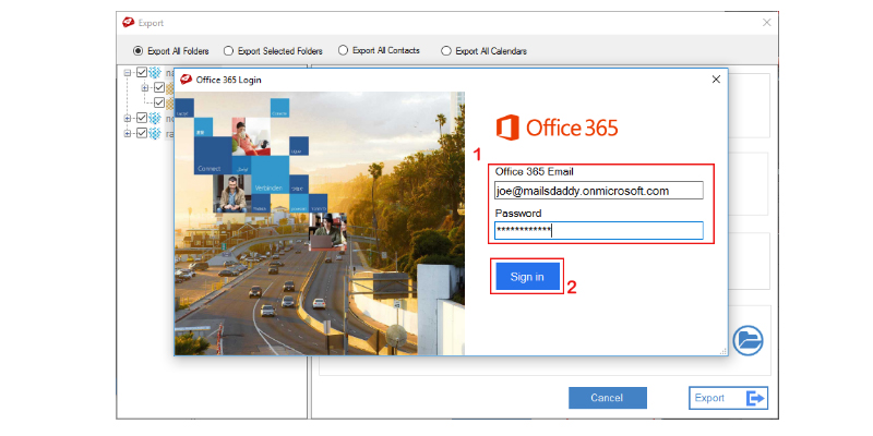 - In the next screen enter the office 365 credentials and click on Sign in button.