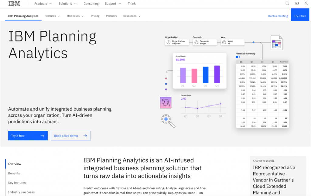 An enterprise planning solution that enables businesses to create dynamic budgets and forecasts. It leverages predictive analytics and AI-driven insights to automate planning processes and generate accurate forecasts based on historical data and market trends. IBM Planning Analytics is widely used across industries for its scalability, flexibility, and ability to support complex budgeting requirements. Key features include: