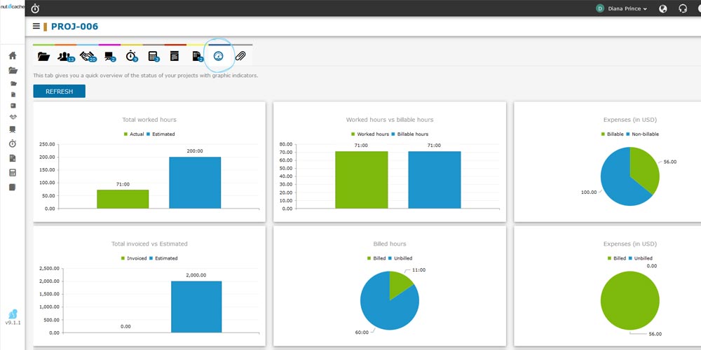 Only available in the paid version, Project Dashboards are critical to your strategic decisions. Graphical displays make it easy to spot how your on-going projects stand vs. your targets. You can also get billable vs. non-billable ratio to see if you’re maybe bleeding money, and examine your collectibles at a glance.