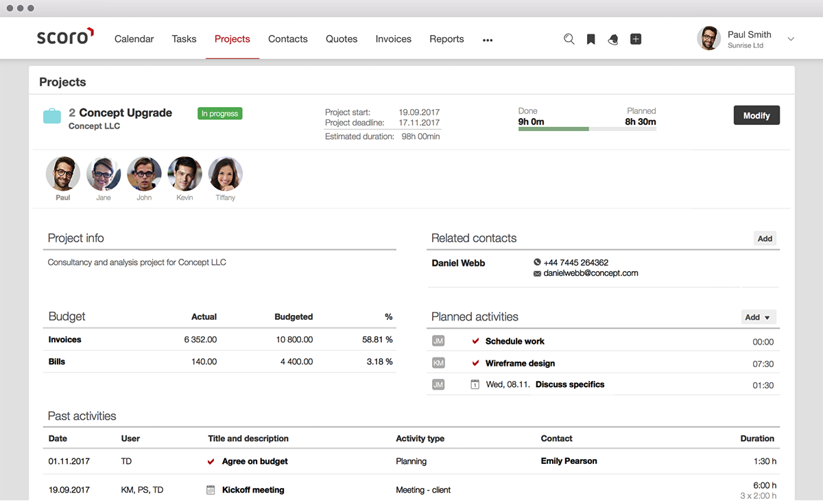 A cloud-based business management software, Scoro is targeted at small to medium enterprises specifically those in the advertising, consulting, information technology among others. Scoro features include collaboration, work scheduling, and tracking, project management, customer relations management, quoting and billing and advanced reporting and dashboards. All these useful features are handled by a user-friendly interface that eliminates the need to switch between solutions and email clients.