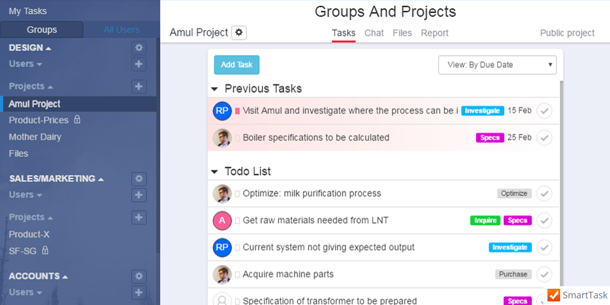 SmartTask is a task and project management solution designed to centralize all projects in a single hub to greatly enhance employee productivity and make collaborative endeavors as frictionless as possible. It has pricing plans for small to medium-sized businesses. A free option for up to 20 users is also available with limited functionalities. While the premium version includes additional features like Custom Fields, Custom Charts, Timeline view, Dashboard, etc.