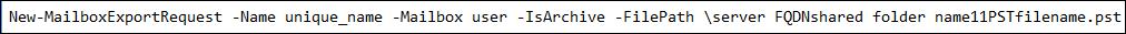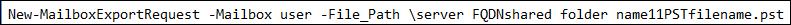 4. Run the MailboxExportRequest PowerShell command that comprises of following 2 major attributes: