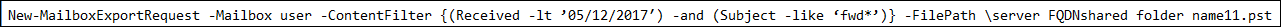 - Content Filtering: This parameter is useful when you want to convert Exchange 2016, 2013, 2010 or 2007 mailbox to Outlook of certain time duration. For example: with help of this option, you will be able to export all the items that exists before the date ‘05-12-2017’. In order to learn the way of utilizing this command, read the following cmdlet: