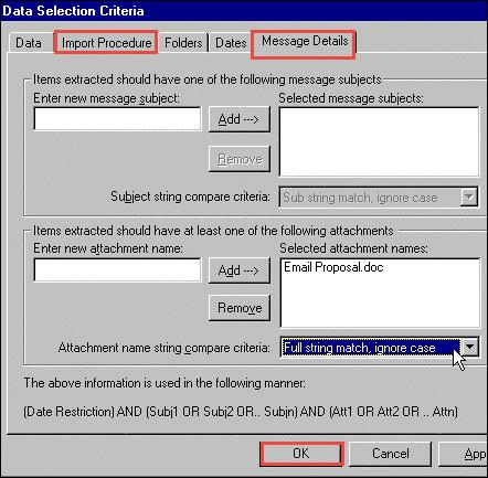 5. From the same panel, click on Message Details tab and enter demanded values. Review all the credentials entered by you and click on Apply >> OK