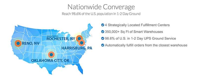 With its four strategically located fulfillment centers, Fulfillify ensures speedy delivery of its customers’ goods all over the world. The service also manages around 350,000 square feet of smart warehouses, allowing it to provide ample storage for its clients’ shipments. These warehouses are linked by a smart warehouse management system that is capable of monitoring and securing customers’ products at all times. They also enable the company to cover 98.6% of the United States in one to two days using United Parcel ground service. The shipping process is further hastened with a system that automatically fulfills orders from the nearest warehouse, paving the way for the platform’s same day pick, pack and ship service.