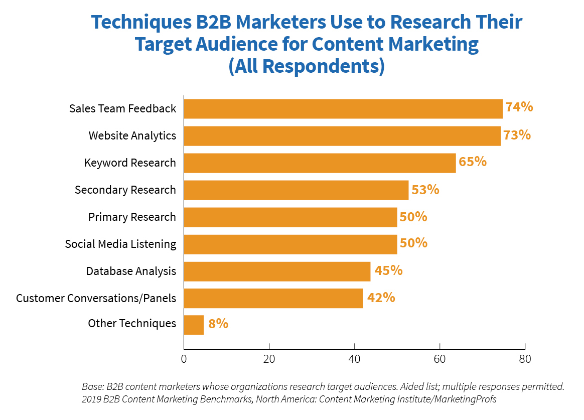 Marketers, business owners, and other professionals have plenty of tricks up their sleeves in order to increase conversions and boost the traffic on their websites. As you can see on the table provided, B2B marketers utilize a variety of methods to target and learn more about their audiences, find effective ways to approach them, and turn them into paying customers.