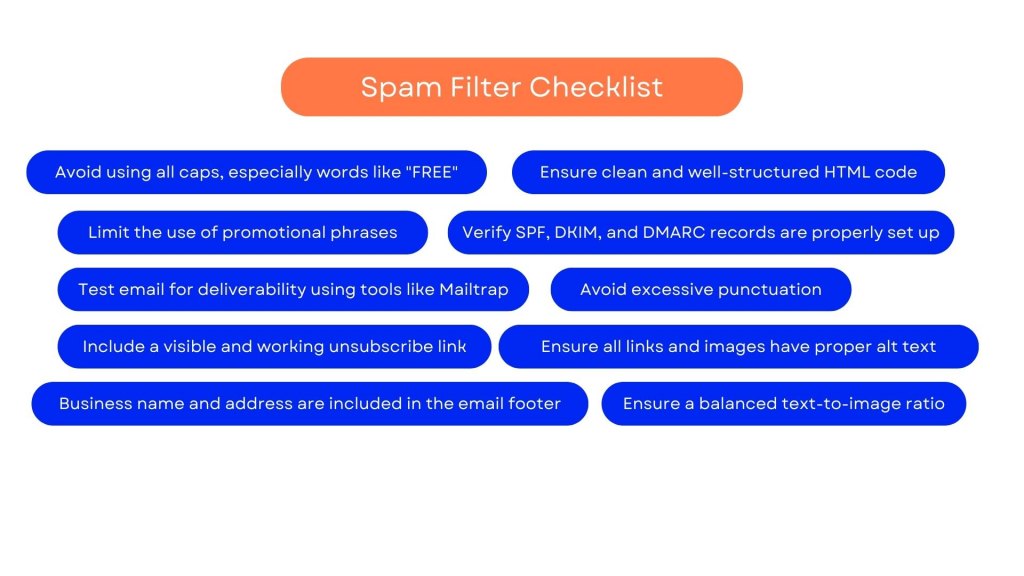 The solution? It helps to keep a checklist of things that can provoke spam filters and avoid making these mistakes.