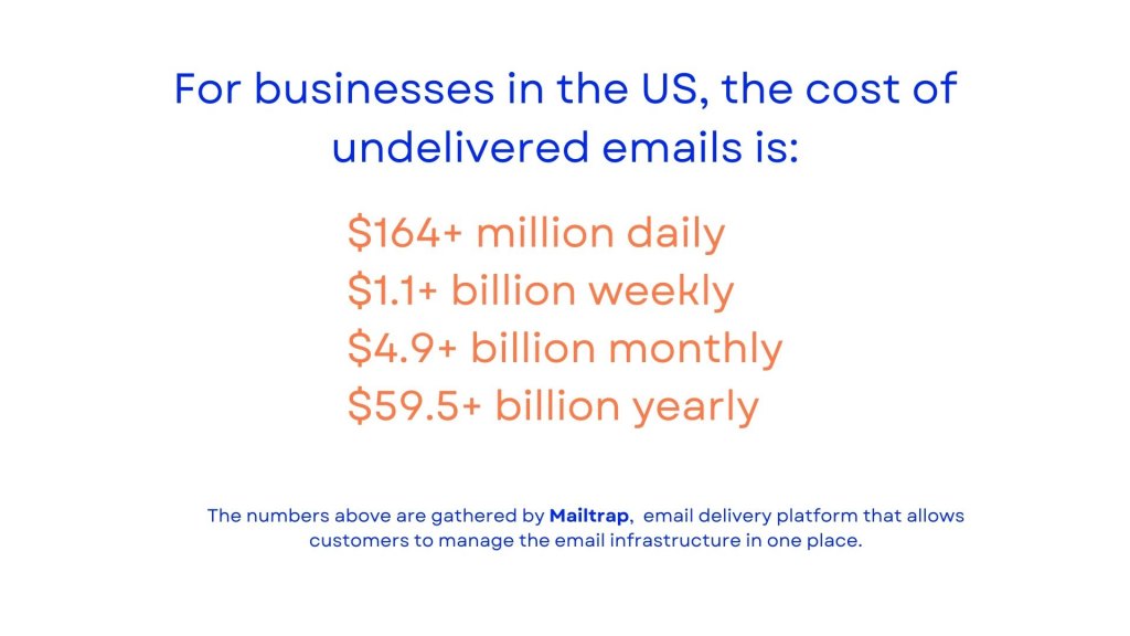 Additionally, consider the operational costs: the salaries of the email marketing specialist, designer, and copywriter who work on every email campaign. All that effort and money go down the drain when emails don’t get delivered.