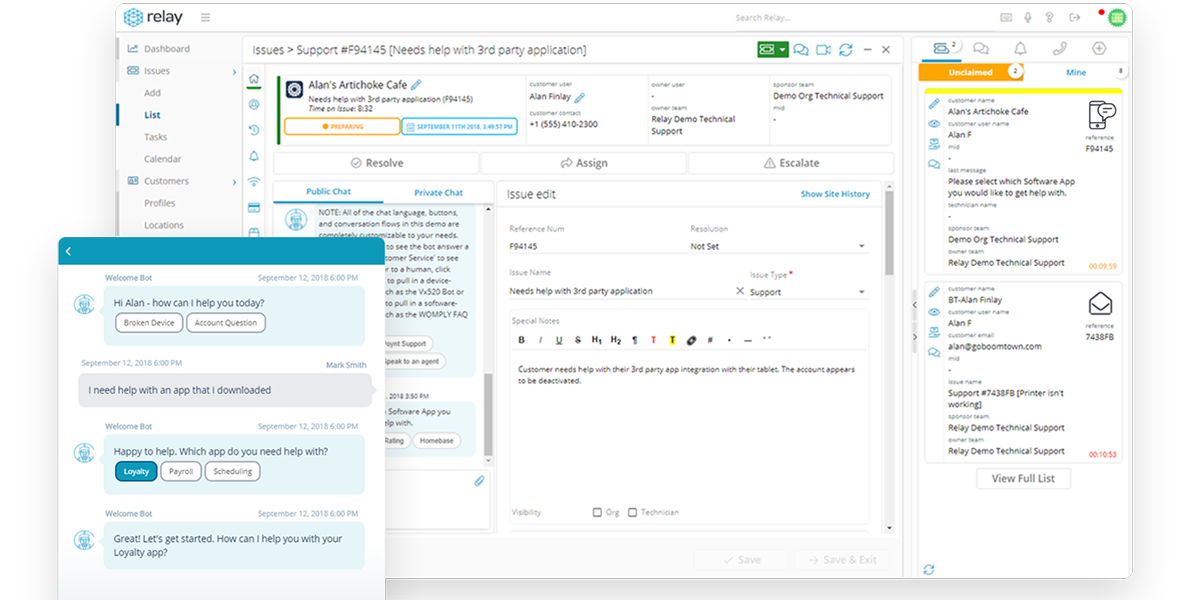 Relay features an omnichannel structure that unifies all requests across all communication channels into a single queue. Essentially, this effectively streamlines distribution of workload and ensures all customer needs are effectively addressed. The platform also allows users to share each ticket to their peers so they can collaborate privately or publicly on how to better resolve various issues and concerns.