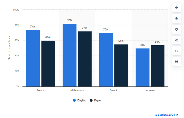 The above data shows that online coupons are more popular among Generation X, Millennials, and Generation Z. However, they do tend to utilize print or paper coupons when they have the chance.