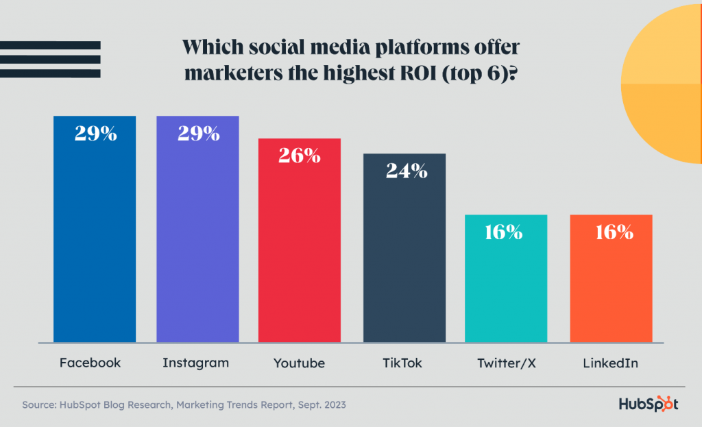 According to HubSpot, Facebook leads the chart in terms of ROI and most active users. Instagram generates more engagement whereas LinkedIn is the most favorite platform among B2B marketers.