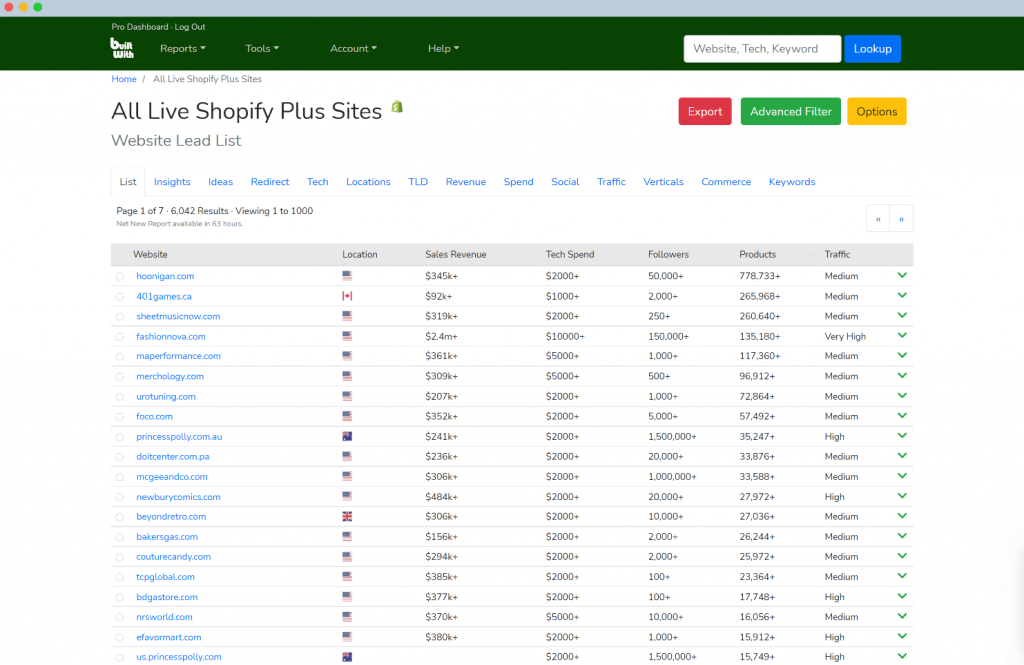 With BuiltWith, you can search for Shopify partners that use Klaviyo in their workflow. You can also filter businesses based on how much they spend on supportive software integrations, average usage duration, or company financials.