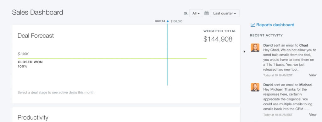 If you’re a heavy Google apps user, you’ll love HubSpot. It integrates with Gmail, Google Drive, and Google Calendar, three widely used online productivity apps.