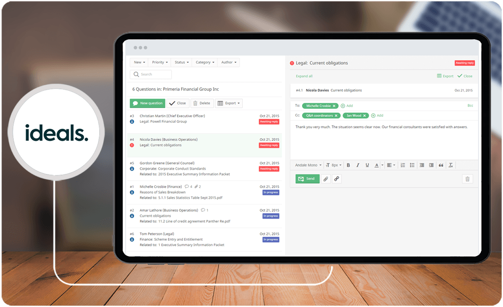 In its highly secure environment, Ideals Virtual Data Room allows you to share and collaborate on sensitive files in a safe place where authorized parties can access important documents with cloud convenience via mobile or desktop browser.