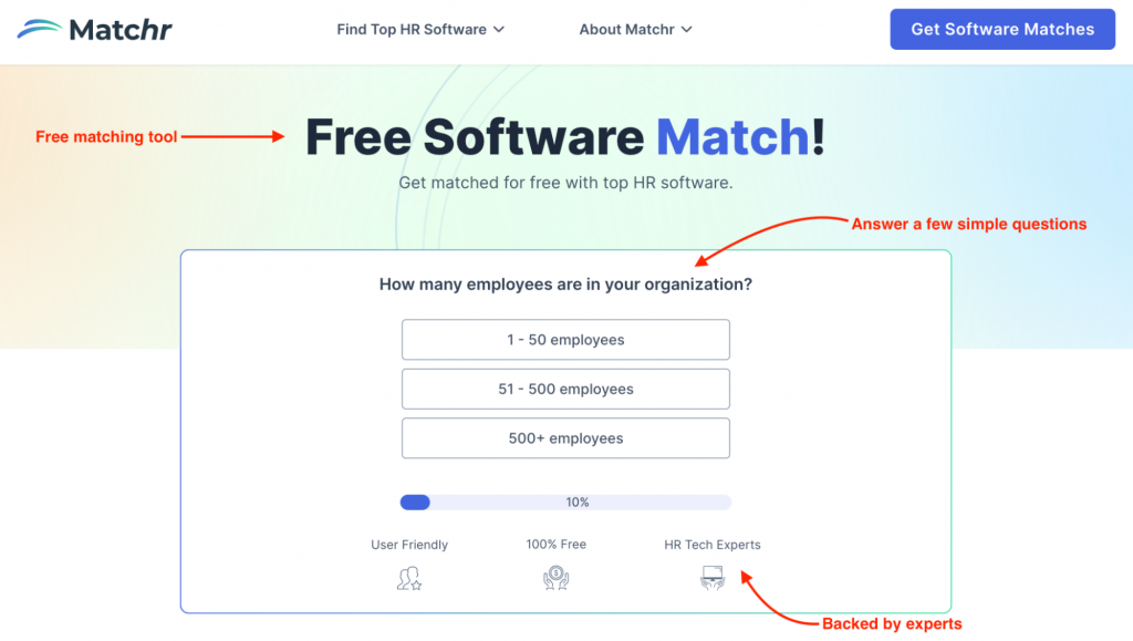For example, after answering a few simple questions Matchr’s proprietary software match tool will narrow down your options, rank them according to relevance, and even predict how well each software might integrate with your existing systems.