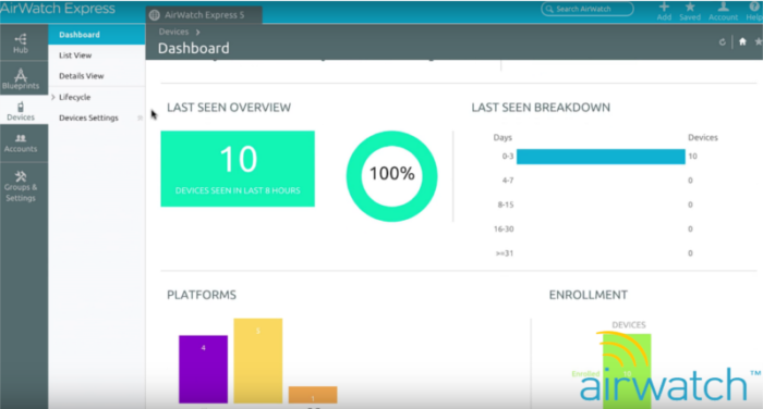 You can utilize AirWatch’s trial offer to use the product for 30 days and enroll up to 100 devices. After the trial period is over, you can select any of the 4 suites offered at affordable prices. AirWatch is used by numerous companies around the globe including top brands like Delta, Columbia, The Home Depot, US Army Corps of Engineers, Target, Merck, and United Bank.