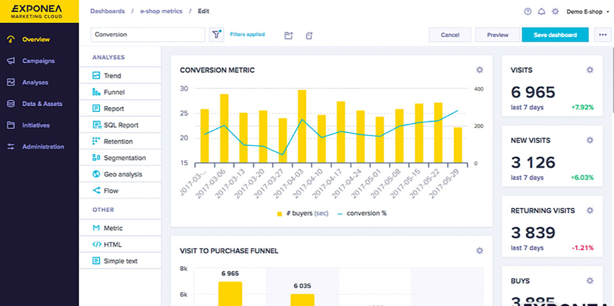 Cloud-deployed marketing platform Exponea is designed for direct execution and quick delivery of results. It significantly boosts customer experience by combining engagement automation and analytics. This enables users to come up with accurate analyses and make data-driven decisions and predictions. It puts a stop on companies’ dependence on their IT teams for designing and planning marketing campaigns by offering the right tools. The product’s use of artificial intelligence and detailed customer data allows it to remarkably improve marketing campaigns. It has very useful features that lets users understand their clients better and quickly respond to their needs.