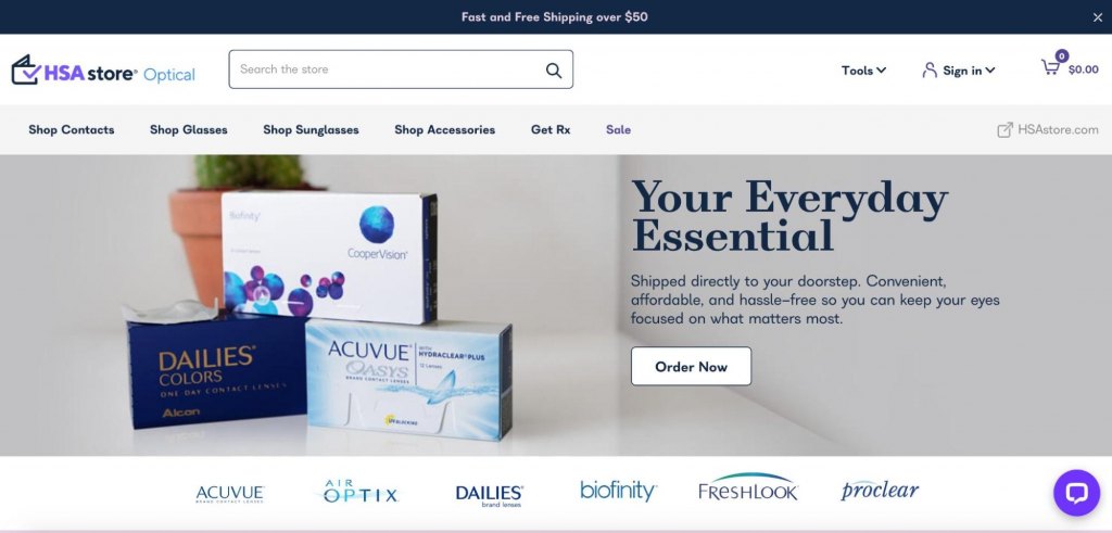 For example, HSA Store Optical has a clean design and a great user experience. Anyone looking to buy glasses, contacts, or related eyewear and eye care products can find what they’re looking for easily.