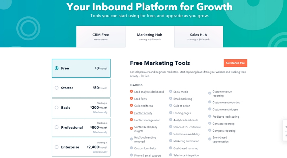 At zero cost, HubSpot Marketing provides tools for soloprenuers and beginner marketers such as lead analytics dashboard, lead flows, collected forms, contact activity, contact management, and contact and company insights. Pair off the marketing hub with the freemium sales solution and the free CRM and you get nearly three dozen tools to empower your lead generation and marketing campaign activities. With the free marketing tools and free CRM, you can collect up to 1 million contacts; beyond that then you will have to upgrade to the paid plans. However, for all intents and purposes, HubSpot’s no cost offerings will give you adequate means to scale and grow your business.