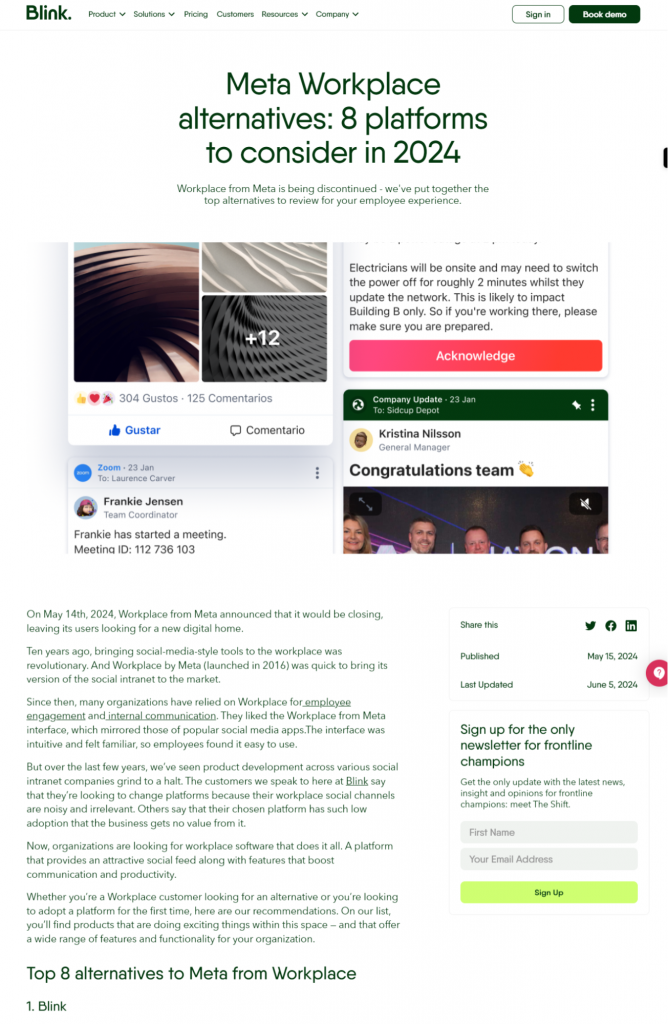 For example, reach out to prospects who currently subscribe to a competitor tool that’s being discontinued. And offer your product as the best alternative. For instance, if you offer an employee engagement and communication tool, you can offer your solution as a Meta Workplace alternative.