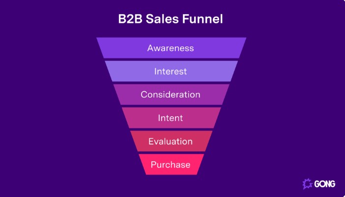 While the sales funnel may look slightly different depending on your tool and audience, the following stages are common in B2B SaaS: