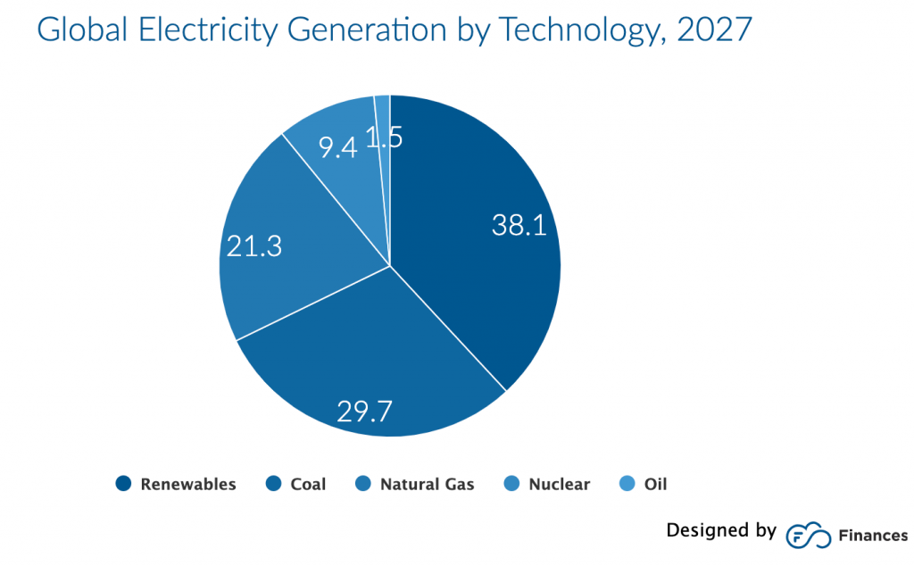 According to the International Energy Agency (IEA) Renewables 2022 report, renewable energy sources are set to overtake coal as the largest source of global electricity by early 2025. Renewables will also account for nearly 40% of global electricity output in 2027. This means a further decline in the shares of coal, natural gas, and nuclear.
