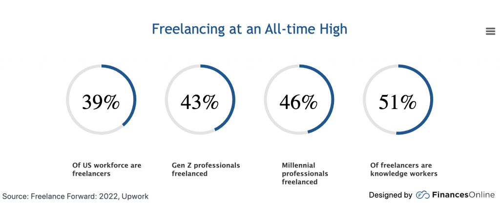 A new study revealed that freelancers now make up 39% of the entire United States workforce. That’s 60 million Americans who performed freelance work in the past 12 months. And if you think that’s just a lot of food delivery services, think again.