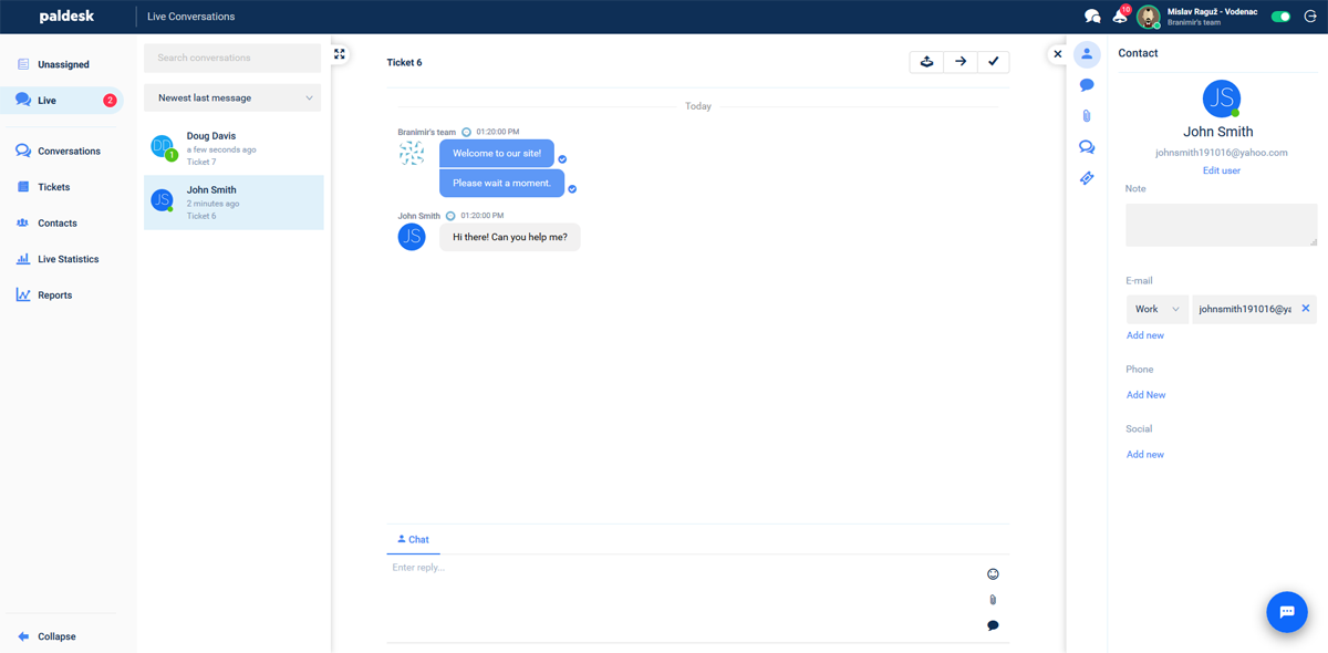 Live chat software Paldesk offers powerful features that make it a compelling live chat solution for your business. If you are not using a live chat application right now, Paldesk makes a lot of sense to introduce your business to a world of fast lead and customer communication and the larger opportunity of increased sales.