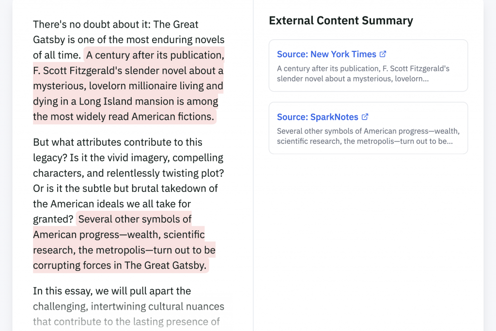 Pangram can verify your content and identify external sources.