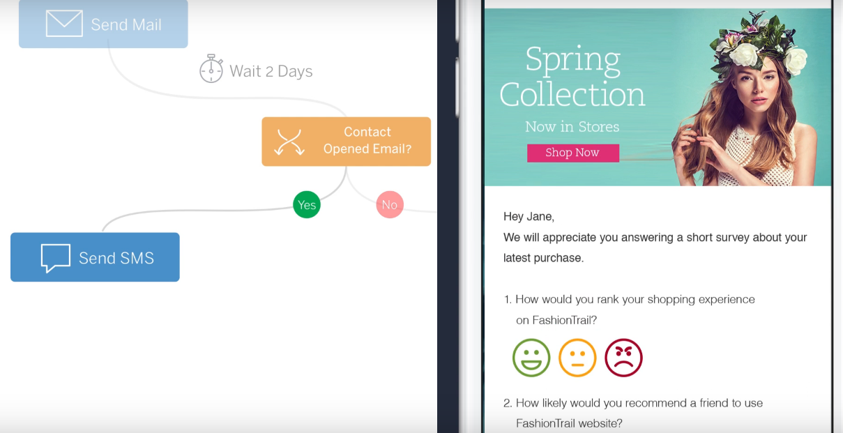 You also get autoresponders to make email campaigns more effective. It lets you configure your SMS and emails to react based on your users’ triggers and behavior. These triggers are set in your automation flow allowing, for example, for users to receive specific messages according to their on-site behavior.