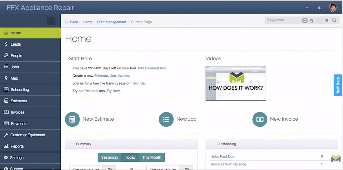 For job payments, you can half the time it takes to fulfill payments and update invoices through online payment integrations, as Authorize.NET, PayPal, and Strip accept AmEx, Discover, Mastercard, and VISA. For job automation, you can use the HomeAdvisor integration for call tracking, real-time alerts, automated customer contact, and instant estimates and booking alerts.