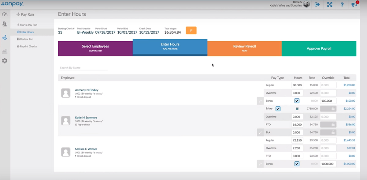 With OnPay you can group employees by schedule, which allows you to pay each group uniquely at specific times.