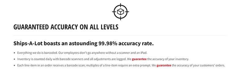 The service’s fulfillment centers are one of the most advanced in the business. Inventory accuracy has been pegged at 99.98%. This is maintained by constant monitoring with the use of barcodes, scanners and tablet computers. The practice helps assure clients that their orders are not only accurate but that their products are all in safe hands. Ships-a-Lot has also been toying with the potential use of robots in its fulfillment centers, intelligent warehouses at its finest indeed.