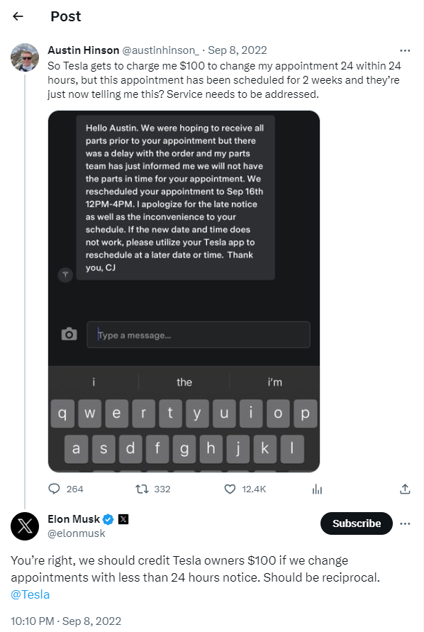 So, you must monitor brand mentions, customer comments, and reviews. This real-time feedback provides invaluable insights into how your audience perceives your products or services. Even Elon Musk, CEO of Tesla Motors, actively responds to customer complaints on Twitter.