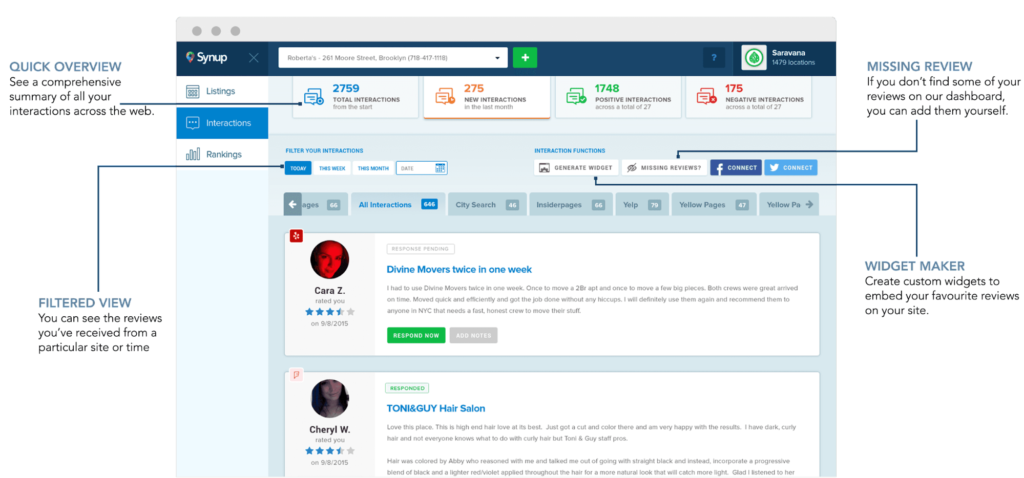 Websites like Yelp, LinkedIn, Synup, Foursquare, Citysearch, YellowPages, etc. allow businesses to post their listings within the niche-, location-, company size-, activity-based categories, etc. Your listing will include basic but essential information, such as your business name, description, contact number, address, timings, and a link directed to your website. If you decide to showcase your business across different platforms, ensure your NAP (name, address, phone number) is consistent across all.